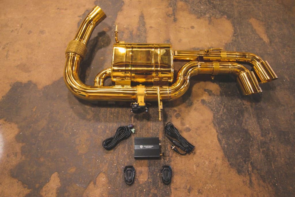 Unlock the Hidden Sound Potential of the Hybrid Supercar/Sport catback system/(2) Gold exhaust tips/Anodized Gold T304 Stainless Steel